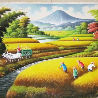 Jual lukisan pemandangan alam panen padi sawah hutan supplier lukisan pemandangan kami supplier lukisan pemandangan terbesar di indonesia .